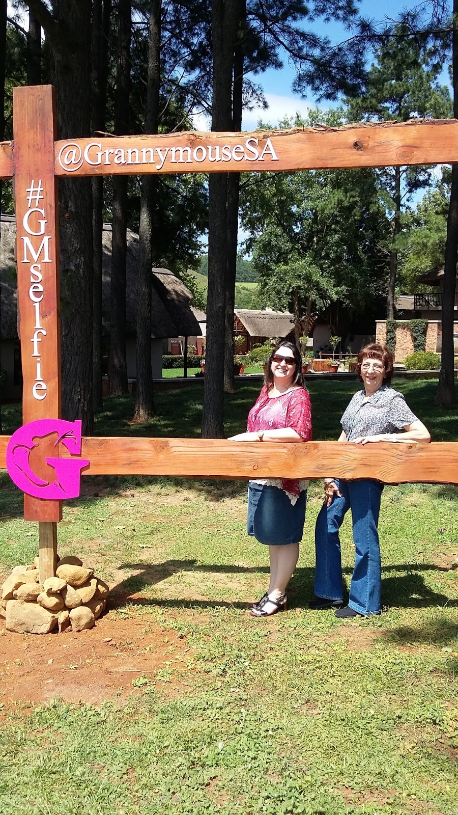 On our sad trip home after our wonderful restful time in the Drakensberg we were very happy to stop at the beautiful Granny Mouse Country House & Spa. My Mom has never been there before so she was especially excited to finally see it. It was a stunning day so we could appreciate the wonderful gardens with their quirky signs. We sat in one of the lounges above the pool and I had a cappuccino and a scone, my Mom had Earl Grey tea and my daughter had a strawberry milkshake. It was lovely to sit and relax and enjoy the view of the cows and horses on top of the hill. Granny Mouse is so unique with its warren of rooms and all the beautiful decor. After our coffee, tea and milkshake Mom and I had our photo taken at the new social media selfie point #GMselfie. I look forward to my next visit to Granny Mouse Country House and the joys of the Midlands Meander.