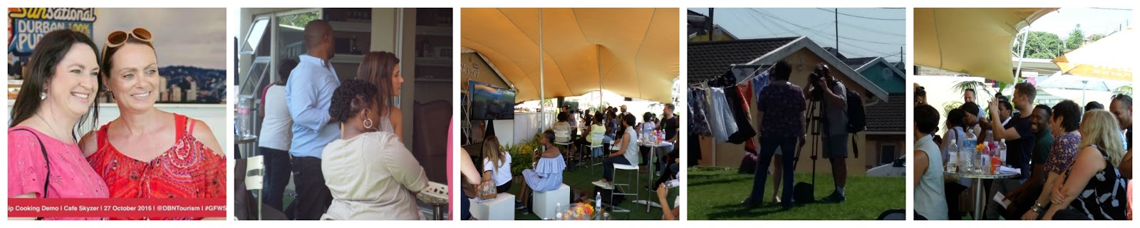 Thursday 27 October was a boiling hot start to this year’s Durban Good Food & Wine Show when Durban Tourism hosted a few of the chef’s at Cafe Skyzer in Chesterville. The meat was sizzling on the braai as were all the guests as we watched the heated cook-off. The chef’s in attendance at the cook-off were Neill Anthony, Jenny Morris, Siphokazi Mdlankomo. Claire Allen, Sherwyn Weaich, Kamini Pather and Lentswe Bhengu.