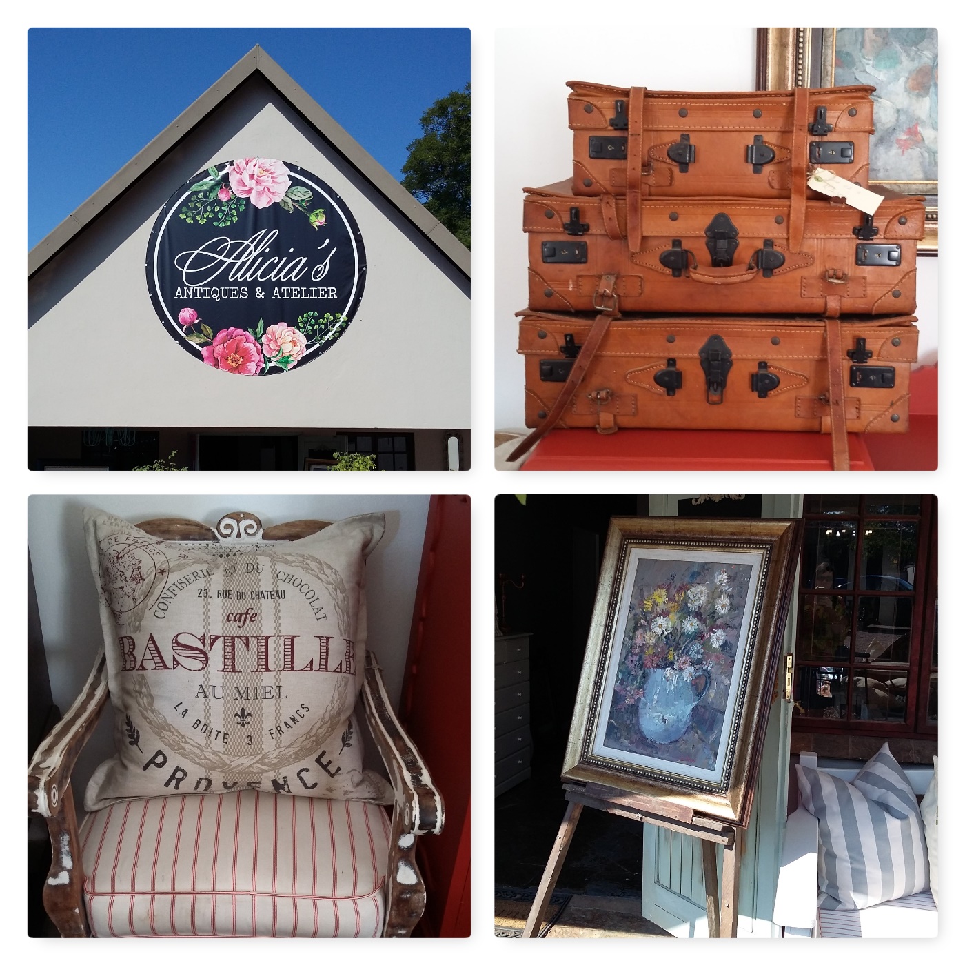 Wednesday 5 April was a sad day as it was the last day I could spend with my sister before she returned to Jhb. Had to take her to new places so first we visited Alicia’s Atelier which sells decor and painted furniture. It has a mix of old and new things and lots of paintings.