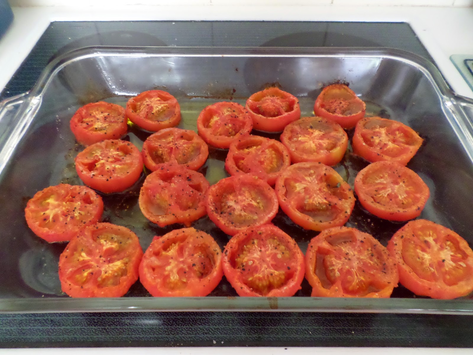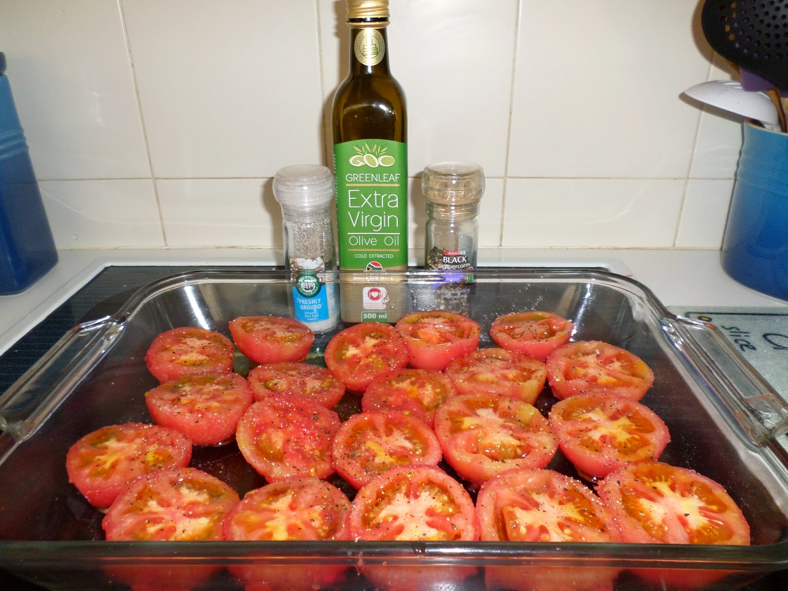 The tomatoes are roasted at 180C for approximately 45 minutes. Make sure you sprinkle with olive oil and season before putting into the oven.